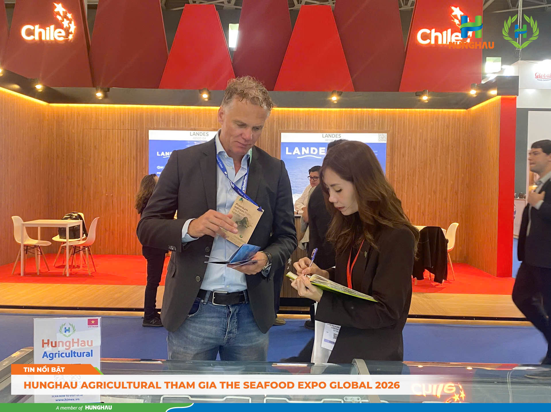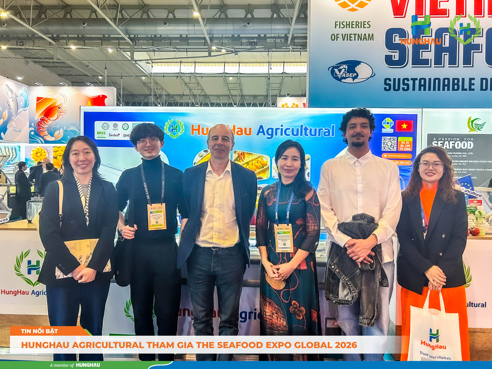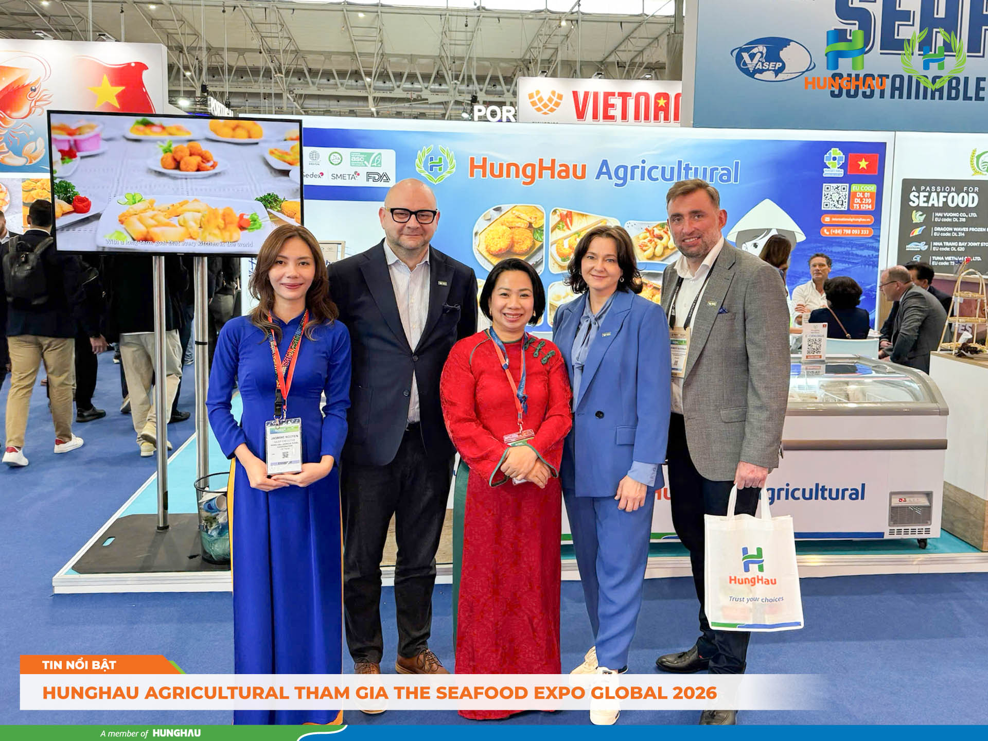 Barcelona, ngày 21/04 – 23/04/2026 tại Seafood Expo Global 2026, HungHau Agricultural tiếp tục đẩy mạnh hoạt động xúc tiến thương mại, thực hiện các phiên gặp gỡ chuyên sâu với nhà nhập khẩu, nhà phân phối và đối tác chiến lược tại thị trường Châu Âu và Quốc Tế.